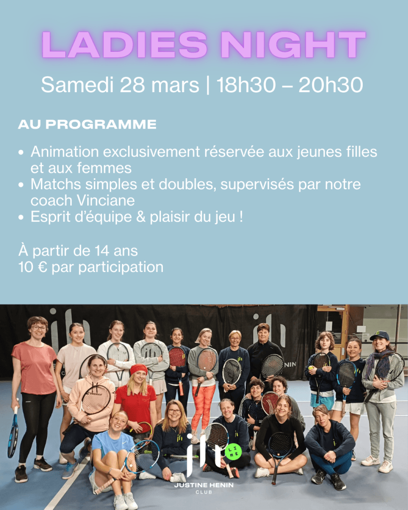 Le Club Justine Henin@Lime invite toutes les joueuses du club à une soirée 100% féminine sur nos terrains 🔥